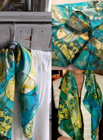 100% silk scarf, hand-rolled (90 x 90 cm)