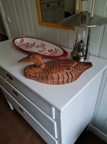 Handgjord trävette, i naturlig storlek vackert snidad ur ett genuint trästycke designad och handmålad på Skeppsudden.